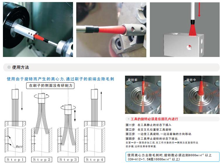 交叉孔去毛刺研磨刷應(yīng)用案例及使用說明: