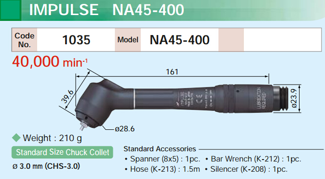 - NAKANISHI直角電主軸RA-200,切割、鉆孔、去毛刺